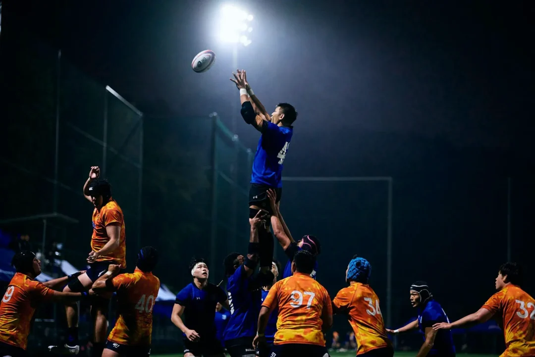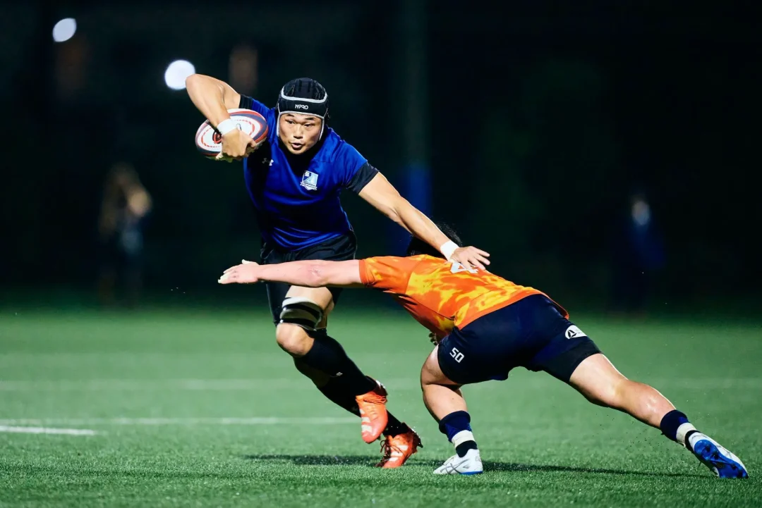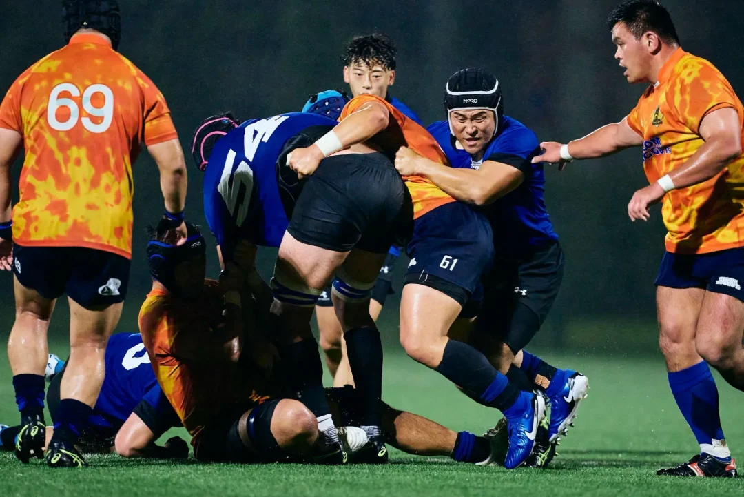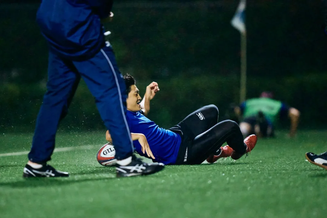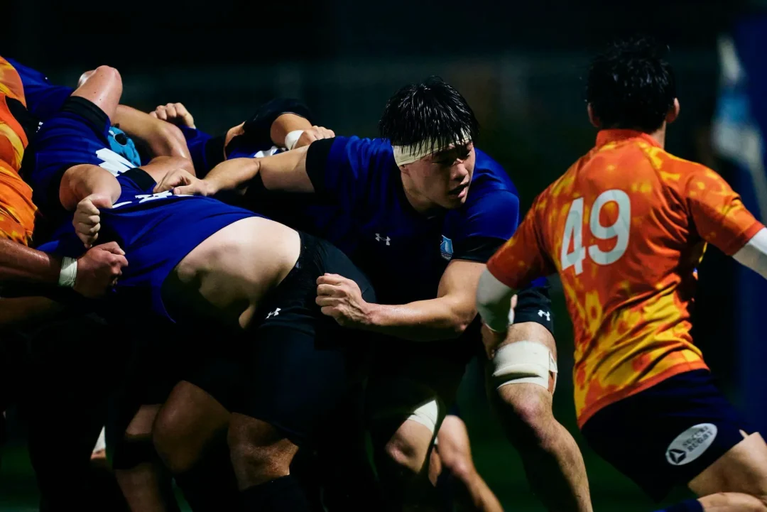 夜間照明に照らされた小雨が、試合後の歓喜に沸くブルーシャークスの選手たちに優しく降り注いでいた。これまで彼らの積み重ねてきた時間を見届けてきた荏田グラウンドの光が、この夜も変わらず彼らを照らしていた。「じゃあ、菅原いこうか!」吉廣ヘッドコーチの声が円陣の中に響いた。常に自らを磨き続けるプロップは、試合終了残り10分から出場し、最後のトライを生んだスクラムを最前線で支えた。チームメートから「影のプレーヤー・オブ・ザ・マッチ」に推され、照れくさそうに一歩前へ。「指名された選手の一言」を促されるも、おどけるように辞退する。その瞬間、輪の中から笑いと拍手が湧き起こった。小雨を弾くような明るい声が夜気に溶けていく。それは、互いの努力と成長を喜び合う、ブルーシャークスというチームの文化そのものだった。