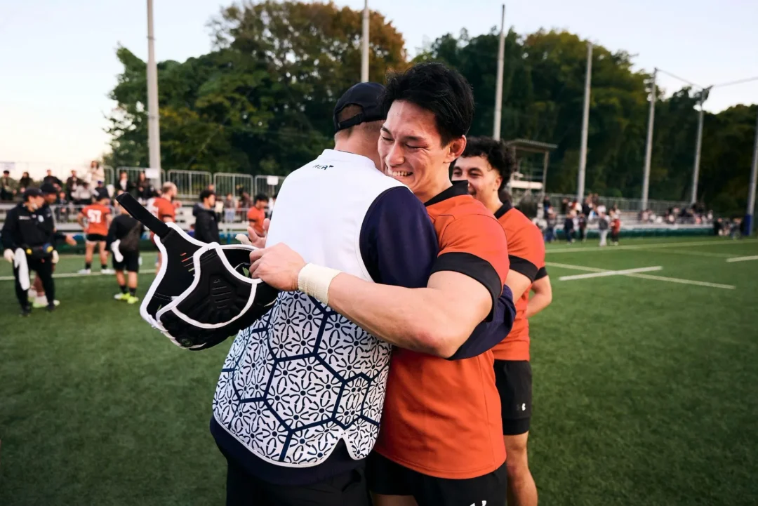 背後から潮田チームディレクターの声が聞こえた。「交代まで、あと3分です」。ピッチサイドで出番を待っていた長谷の表情が、より一層の闘志をまとった。足元のタッチラインが、沈みかけの陽光を照り返して白く輝いている。この白線の向こう側に、2年近くも焦がれ続けてきた。踏み出せばすぐそこにある場所なのに、長谷にとって、その距離は果てのないものに思えた。それでも「ラグビーが好きな気持ちは、どうやっても消えなかった」。何度も折れかけた心を救ってくれたのは、揺るぎのない思いだった。少し俯いてタッチラインを跨ぐ。共にフィールドに入った日髙がそっと背中を押してくれた。緊張は感じなかった。不安よりも、嬉しさで鼓動は自然と高鳴った。「今日は自分の日だ」。顔を上げると、秋晴れの美しい空と仲間たちの笑顔が待っていた。
