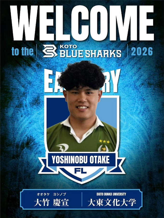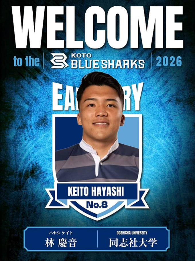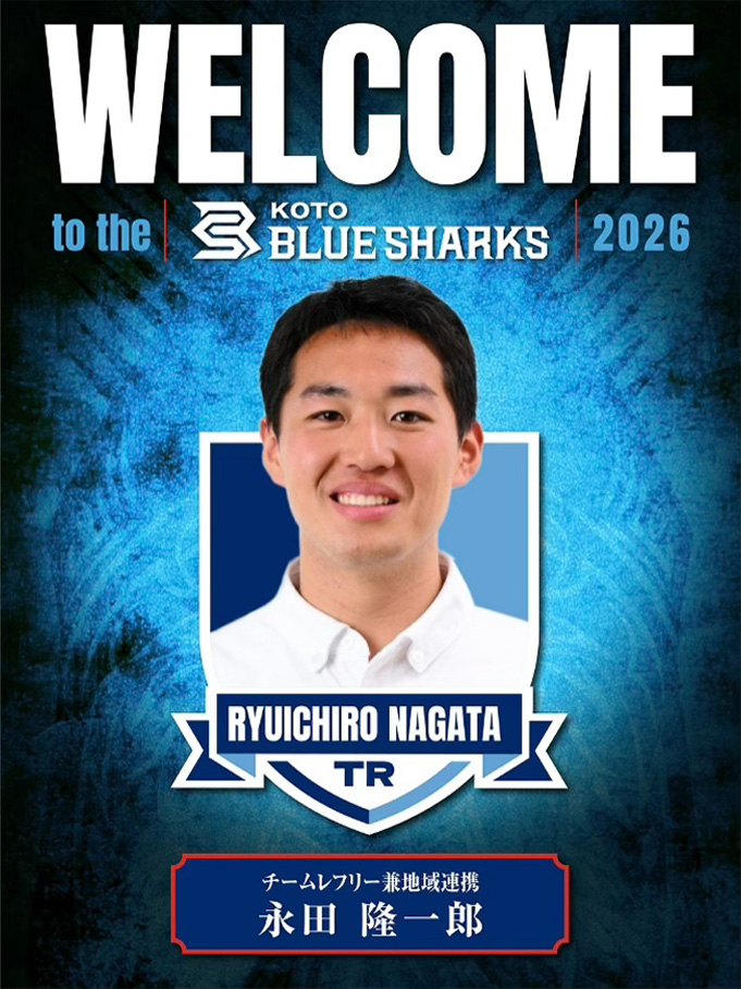この度は清水建設江東ブルーシャークスに所属することとなりました。多くの方々のご尽力により、このチームでプレーできることに感謝申し上げます。